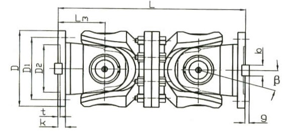 十字萬向聯(lián)軸器有多種結構型式,例如:十字軸式、球籠式、球叉式、凸塊式、球銷式、球鉸式、球鉸柱塞式、三銷式、三叉桿式、三球銷式、鉸桿式等,*常用的為十字軸式,其次為球籠龍,萬向聯(lián)軸器的共同特點是角向補償量較大,不同結構型式萬向聯(lián)軸器兩軸線夾角不相同,一般≤5°-45°之間。萬向聯(lián)軸器利用其機構的特點,使兩軸不在同一軸線,存在軸線夾角的情況下能實現(xiàn)所聯(lián)接的兩軸連續(xù)回轉,并可靠地傳遞轉矩和運動。萬向聯(lián)軸器*大的特點是具有較大的角向補償能力,結構緊湊,傳動效率高。在實際應用中根據(jù)所傳遞轉矩大小分為重型、中型、輕型和小型。