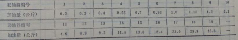 聯軸器的咬合應在油浴內工作。潤滑油一般可用機械油。露天工作的聯軸器,在天氣寒冷時,使用10號汽油機潤滑油。聯軸器的油容量見圖片
